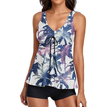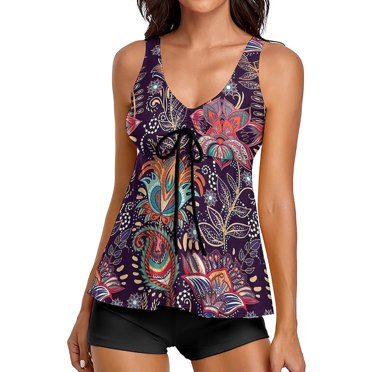 Tankini Swimsuits For Women With Shorts Athletic Two Piece Bathing Suits Floral V Neck Racerback Tank Tops Swimwear Walmart Com